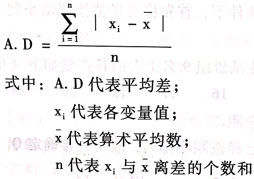 。平均差反映了变量的各个取值离其算术平均数的平均距离。