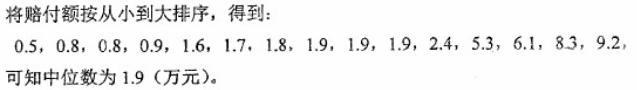 计算赔付额的中位数 作者:高老师 时间:2024-07-26 浏览 1 计算赔付额的中位数【正确答案】:【题目解析】:中位数:(1)变量值按照从小到大的顺序排成一列(2)取中心位置上的变量值(或两侧变量值的算术平均数)。本题,按从小到大排序后,可知位于中间的数值为1.9 📱 扫码体验刷题小程序 扫一扫使用我们的微信小程序