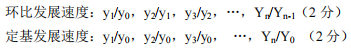 (2)定基发展速度,又称总速度,是报告期水平与某一固定时期的水平(通常为最初水平)之比,反映报告期比某一固定时期发展变动的相对程度,即某一较长时期内的总的发展速度。