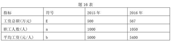 问题: (1) 2016年相对于2015年,工资总额变动的比率为多少? (5分)