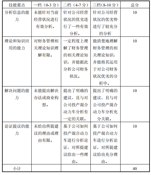 1.评卷时应遵循以下评分标准: (1)分析和决策能力(40 分)