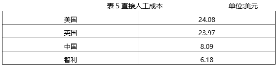 (四)国机公司的未来一环境战略在过去的一年中,国机公司的销售显著提高,董事会得到的信息表明,在可以预见的未来,这一情况仍将持续。各厂的利润都有增长,总部希望能充分利用这种增长来做好生产方式、质量管理、顾客服务和公共关系等方面的改进工作。他们相信,这对于未来的成功及提升其在全球汽车市场的竞争力至关重要。董事会决定将资金投入上述领域。公司关于环境问题的新战略是发展的关键,因为市场调研显示,汽车生产及驾驶所产生的环境污染问题备受公众关注,在中国尤其如此。董事会认为关注该问题能够找到使本公司产品区别于竞争对手的解决方案。研究报告显示,低碳经济、环保与污染防治、能源安全战略等多个因素决定了发展新能源汽车是全球汽车产业的必然趋势。全球一线汽车厂商正在积极研制新能源汽车,特别是依靠电力完成长途驾驶的车型,以替代传统燃油驱动轿车。然而,有限的充电设施阻碍了电动车的发展,这一问题在某些国家尤为严重。混合动力可以在必要的时候切换为传统的燃油驱动,因此也成为了汽车厂商研制的重点。越来越多的消费者开始对混合动力车产生兴趣,源于社会倡导的环境友好型驾驶观念、传统能源价格不断上涨所引发的驾车成本高昂以及某些国家給予混合动力车消费者50%的价格优惠补贴政策。研究显示,2016年, 亚洲是全球最大的混合动力车销售市场,占48%; 欧洲次之,占22%;北美20%;南美10%。调研数据虽难以精确描述混合动力车销售情况,但整体而言,其增长趋势相当明显。仅在美国,混合动力车的销售在汽车总销量中的份额从2007 年的2.99%上升到2017年的3.9%,预计还会进一步上升。日本厂商丰田汽车已经对该领城市场进行了大量投入,称为公认的成熟市场引领者,特别是在日本和美国。国机公司的智利研发部已开始研发使用替代燃料(如电力或生物能)的产品,以及使用传统燃料与替代燃料相结合的混合动力车。因此董事会正在考虑批量生产一种能同时使用电力和传统燃料的新型混合动力车。这将有助于董事会的决策更侧重于环境问题,但也会对企业的生产和营销战略产生重大影响。国机公司的每个工厂都配备了最新的生产技术。但是,这些新技术主要针对生产系统燃油汽车。董事会意识到,若想提高环保型汽车的产量并盈利,需要巨额投入。在各厂安装生产线的平均成本是相同的,约为1.5亿美元。但是,购买更多产能的成本在各国并不相同,且取决于所在国政府是否拨款。国机公司内部投资政策设定所有新投资的回收期不得超过五年。由于混合动力车在行业中尚处于产品生命周期的引入阶段,若在四个工厂同时生产,预算明显不足。因此,董事会决定仅在一家工厂生产。这个决策还有另一层考虑,若在所有工厂投产新车,高额的投资水平在混合动力车投产的初期将面临极大的风险,而销售情况难以预测。各厂单位工时的人工成本如表5所示。