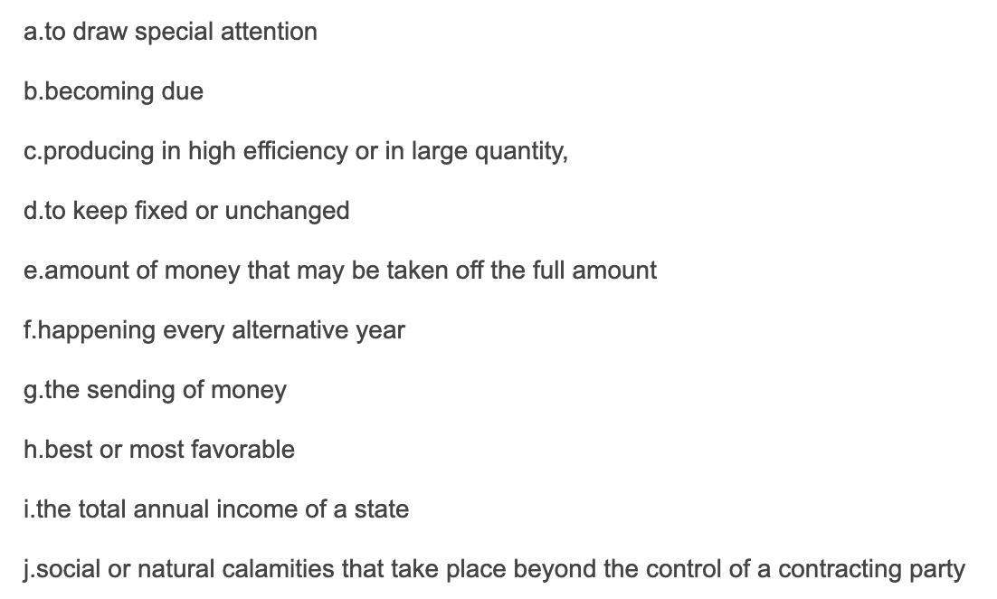 24.j 该表达意为不可抗力。majeure一般表示压倒性的力量。这样整体上表达没有办法克服的或者不可控的力量,即为不可抗力。