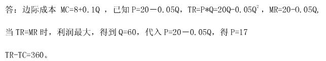 已知某垄断厂商的成本函数和需求函数分别为:TC=8Q+0.05Q2,P=20-0.05Q。求利润最大化时的产量?此产量时的利润为 作者:高老师 时间:2024-07-27 浏览 1 已知某垄断厂商的成本函数和需求函数分别为:TC=8Q+0.05Q2,P=20-0.05Q。求利润最大化时的产量?此产量时的利润为多少?【正确答案】: 📱 扫码体验刷题小程序 扫一扫使用我们的微信小程序
