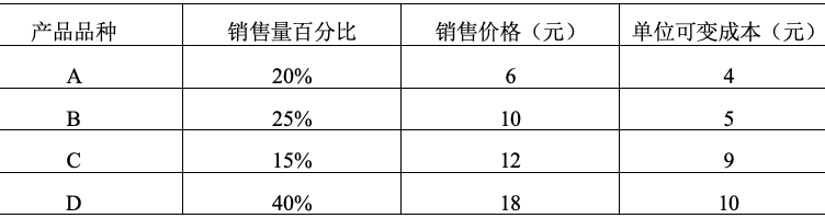 某企业生产A、B、C、D四种产品,多年来平均销售资料如下表。若预计本年度销售总收入为250 000元,试计算各产品的边际收益率和该企业的总边际收益。