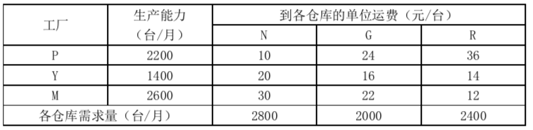 某公司现有两个工厂位于不同的城市P城、Y城,另有3个仓库位于N港、G港和R城。考虑公司的发展,公司决定选择在M城新建一个工厂,各工厂生产能力、仓库需求及工厂到仓库的单位运费如下表。试建立供需平衡的运输表,并以西北角法求其最初的运输方案。