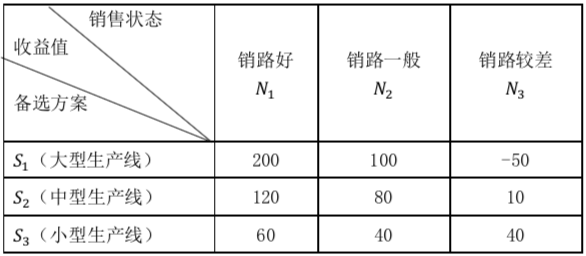 某公司拟对新产品生产批量作出决策,现有三种备选方案,未来市场对该产品的需求也有三种可能的自然状态,收益如下表。试以最小最大遗憾值 作者:高老师 时间:2024-07-27 浏览 1 某公司拟对新产品生产批量作出决策,现有三种备选方案,未来市场对该产品的需求也有三种可能的自然状态,收益如下表。试以最小最大遗憾值决策标准作出最优生产决策。【正确答案】:【题目解析】: 📱 扫码体验刷题小程序 扫一扫使用我们的微信小程序