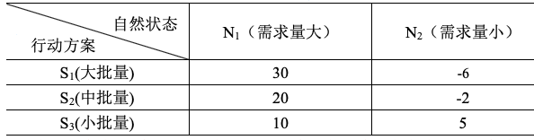 某公司拟对新产品生产批量作出决策,现有三种备选方案,未来市场对该产品的需求有两种可能的自然状态,收益矩阵如下表。以最大最大决策标准作出最优生产决策。