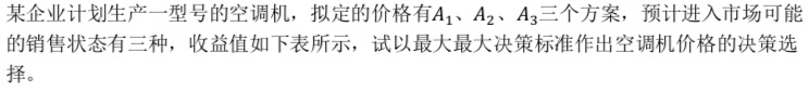 故按最大最大决策标准,应选择以较高价格出售空调机。