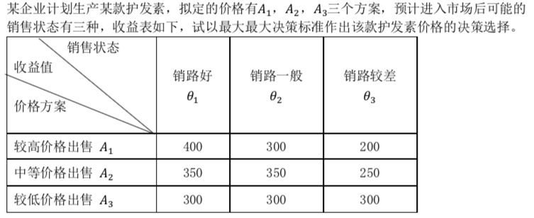 作者:高老师 时间:2024-07-27 浏览 1 【正确答案】:【题目解析】:最大最大决策标准:首先从每个方案中选择一个最大的收益值,然后再从这些最大收益值中选择一个最大值,作为备选方案。简记为:大中取大。根据此标准进行决策即可。详细过程见答案。 📱 扫码体验刷题小程序 扫一扫使用我们的微信小程序