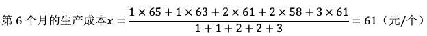 某企业生产的一款电热水壶前5个月的生产成本依次为:65、63、61、58、61(元/个),现设定它们相对应的权数分别为1、1、2、2、3,试用加权平均数预测法,预测第6个月该款电热水壶的生产成本。