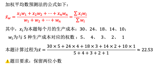 某企业成功开发一种新产品,为了确定出厂价格,该企业调研了市场上5种同类产品的出厂价格如下:30,24,18,14,10(元/件),该厂对它们设定了相应的权数为:5、4、3、2、1,试依据加权平均数预测法,计算该新产品的出厂价格预测值(结果保留二位小数)。