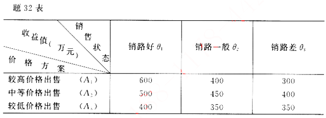 某企业计划生产某款自动扫地机,拟定的价格有A1、A2、A3二个方案,预计进入市场后可能的销售状态有三种,收益值如题32表所示。试以最大最小决策标准作出该款自动扫地机价格的决策选择。