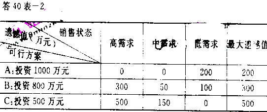 某企业欲投资生产某新产品,该产品生命周期为5年。现有三种投产方案备选,三种方案可能实现的年销售收入状况如题40表: