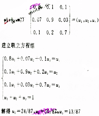 某商场对购买A、B、C三种型号的化妆品的顾客作抽样调查:原买A型化妆品仍然继续保持使用A型化妆品的人占80%,改用B型化妆品的人占10%,改用C型化妆品的人占10%。原用B型化妆品仍然继续使用B型化妆品的人占90%,改用C型化妆品的人占3%,改用A型化妆品的人占7%。原用C型化妆品仍然继续使用C型化妆品的人占70%,改用B型化妆品的人占20%,改用A型化妆品的人占10%。试问:经过一段时间后,处于平衡状态时,这三种型号化妆品的市场占有率分别为多少?