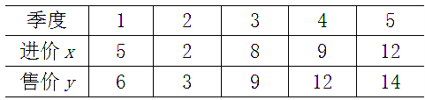 某商店统计了最近5个季度某商品的进价与售价数据,具体数据列题33表(单位:元)如下: