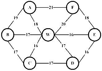 某工程埋设电缆,将中央控制室W与6个控制点相连通,各控制点位置及距离(公里)如题36图。如何埋设可使电缆总长最短?求出最短距离。