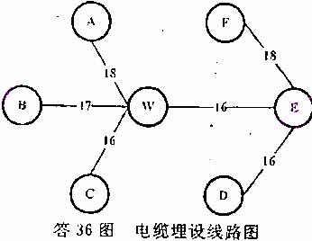 题36图某工程埋设电缆各控制点位置及距离图(单位:公里)