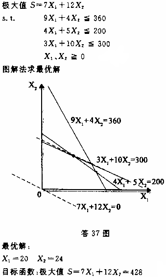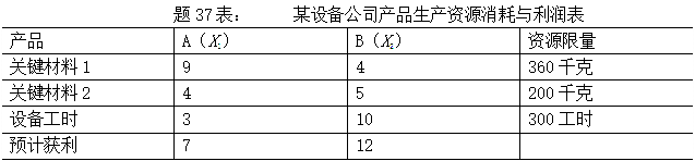 某设备公司计划期内安排A、B两种产品生产,有关资源消耗及可获利润(千元/件)如题37表,该公司希望实现利润最大化。建立该问题的线 作者:高老师 时间:2024-07-27 浏览 0 某设备公司计划期内安排A、B两种产品生产,有关资源消耗及可获利润(千元/件)如题37表,该公司希望实现利润最大化。建立该问题的线性规划数学模型并用图解法求出最优解。【正确答案】:线性规划问题的数学模型: 📱 扫码体验刷题小程序 扫一扫使用我们的微信小程序