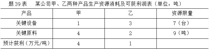 某公司计划期内安排甲、乙两种产品生产,有关资源消耗及可获利润如题39表,该企业希望获得利润最大化。写出该线性规划问题的数学模型, 作者:高老师 时间:2024-07-27 浏览 1 某公司计划期内安排甲、乙两种产品生产,有关资源消耗及可获利润如题39表,该企业希望获得利润最大化。写出该线性规划问题的数学模型,用图解法求出其最优解。【正确答案】:线性规划问题的数学模型: 📱 扫码体验刷题小程序 扫一扫使用我们的微信小程序