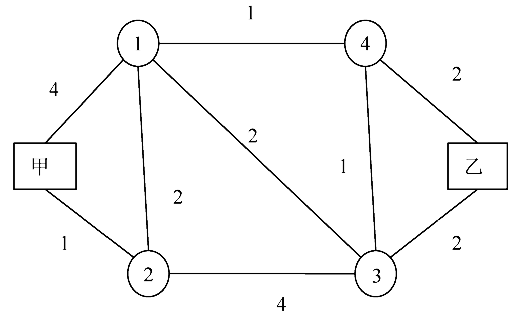 再求出与1,4,3.乙连接的点2,2-1-4-乙就是最短路,最短路长是5;