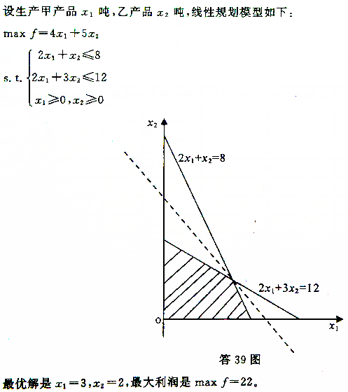 某公司利用两种原料A、B生产甲、乙两种产品(吨),各产品所需的原料数,原料限量及单位产品所获利润如题39表。企业目标是追求利润的 作者:高老师 时间:2024-07-27 浏览 1 某公司利用两种原料A、B生产甲、乙两种产品(吨),各产品所需的原料数,原料限量及单位产品所获利润如题39表。企业目标是追求利润的最大化,试写出该线性规划问题的数学模型,并用图解法求出最优解和最大利润。【正确答案】: 📱 扫码体验刷题小程序 扫一扫使用我们的微信小程序