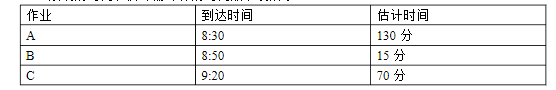 在某计算中心的一个单道程序设计系统中,有A、B、C三个作业在等待处理,它们到达系统的时间和估计需计算的时间如下表所示: