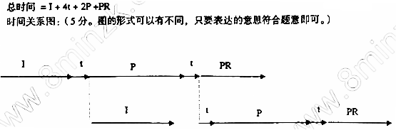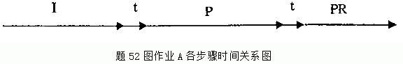 某操作系统采用斯普林操作技术。现有两个作业A和B,每个作业都是先占用CPU,用时均为P;然后用打印机输出结果,打印需时均为PR;完成打印后,作业结束。作业进入输入井的时间均为I;把作业从输入井取出送人主存的时间和把作业的运行结果送入输出井的时间均为t。这里P>1,P>PR。请给出表示完成这两个作业所需的总时间的表达式。并在下列的关于作业A的各步骤的时间关系图的基础上,在答题卡题52图中给出作业B的各步骤的时间关系图,以及这两者之间在时间上的对应关系。