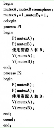 有2个并发进程P1和P2,它们都要使用临界资源A和B。为了实现对上述资源的互斥访问,可定义2个信号量mutexA和mutexB分别对应于资源A和B。P1和P2进程的程序如下: