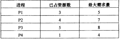 设有15个同类资源可供4个进程共享,进程对资源的需求量及资源分配情况如下: