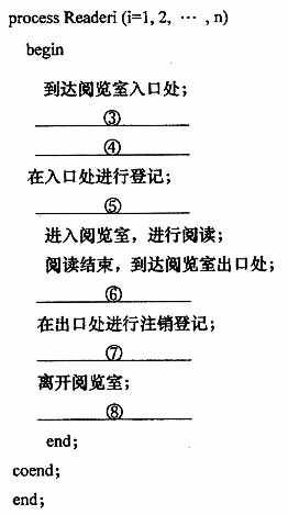 设阅览室内有100个座位,请用PV操作编写读者进程的同步算法。请补充完整下列程序。