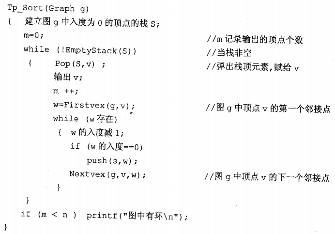 (1)图中选择一个入度为0的顶点,输出该顶点;