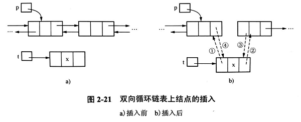 在p所指结点的后面插入一个新结点*t,需要修改四个指针: