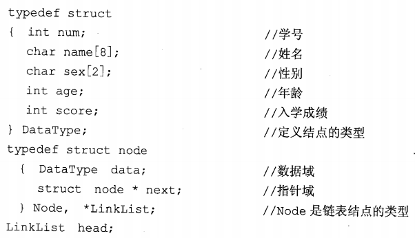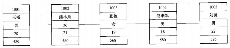给出图中学生档案信息表的链接存储实现。