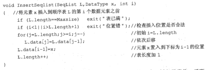 设计算法实现顺序表的插入运算InsertSeqlist(SeqList L,Data Type x, int i)。该算法是指在顺序表的第I(1≤i≤n+1)个元素之前,插入一个新元素x。使长度为n的线性表