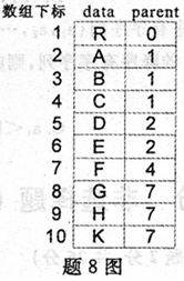 若某棵树的存储结构采用双亲表示法,如题8图所示,则该树的高度是 作者:高老师 时间:2024-07-27 浏览 0 若某棵树的存储结构采用双亲表示法,如题8图所示,则该树的高度是A、2B、3C、4D、5【正确答案】:C 📱 扫码体验刷题小程序 扫一扫使用我们的微信小程序