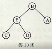 已知一棵二叉树的中序序列为CEDBA后序序列为CDEAB,请画出这棵二叉树,并写出这棵二叉树的先序序列。 作者:高老师 时间:2024-07-27 浏览 1 已知一棵二叉树的中序序列为CEDBA后序序列为CDEAB,请画出这棵二叉树,并写出这棵二叉树的先序序列。【正确答案】:(1)该二叉树为: (注:根结点2分,左子树1分,右子树1分。) (2)该二叉树的先序序列为: BECDA 📱 扫码体验刷题小程序 扫一扫使用我们的微信小程序