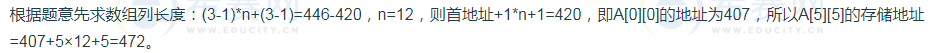二维数组 A 按行序优先顺序存储,每个数据元素占 1 个存储单元。若数据元素 A [ 1 ][ 1 ]的存储地址是 420 , 作者:高老师 时间:2024-07-27 浏览 9 二维数组 A 按行序优先顺序存储,每个数据元素占 1 个存储单元。若数据元素 A [ 1 ][ 1 ]的存储地址是 420 , A [ 3 ][ 3 ]的存储地址是 446 ,则 A [ 5 ][ 5 ]的存储地址是A、470B、471C、472D、473【正确答案】:C【题目解析】: 📱 扫码体验刷题小程序 扫一扫使用我们的微信小程序
