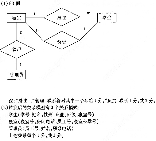 某学生宿舍管理系统,涉及的部分信息如下:(1)学生:学号,姓名,性别,专业,班级。(2)寝室:寝室号,房间电话。(3)管理员:员 作者:高老师 时间:2024-07-27 浏览 0 某学生宿舍管理系统,涉及的部分信息如下:(1)学生:学号,姓名,性别,专业,班级。(2)寝室:寝室号,房间电话。(3)管理员:员工号,姓名,联系电话。其中:每个寝室可同时住宿多名学生,每名学生只分配一个寝室;每个寝室指定其中一名学生担当寝室长;每个管理员同时管理多个寝室,但每个寝室只有一名管理员。(1)建立一个反映上述局部应用的ER模型,要求标注联系类型(可省略实体属性)。(2)根据转换规则,将ER模型转换为关系模型。【正确答案】: 📱 扫码体验刷题小程序 扫一扫使用我们的微信小程序