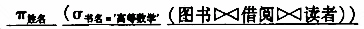 (5)依据36题的关系模式,用关系代数表达式检索借阅“高等数学”的读者姓名。