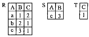 关系R和S如下表,则关系T是R和S的 作者:高老师 时间:2024-07-27 浏览 1 关系R和S如下表,则关系T是R和S的A、自然连接B、交C、除D、并【正确答案】:C【题目解析】:除运算是R关系中的元素减去S关系中的元素的结果。 📱 扫码体验刷题小程序 扫一扫使用我们的微信小程序