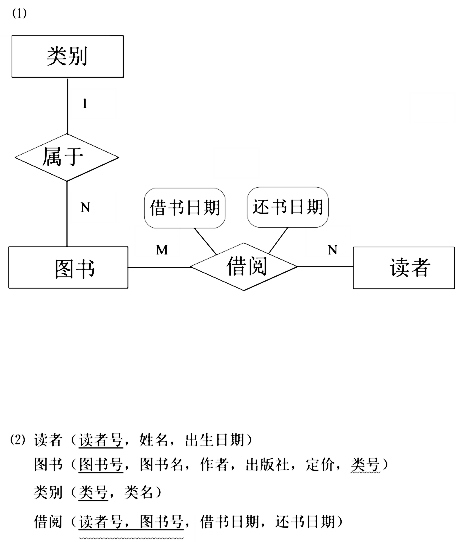 其中,每一类别有多本图书,每本图书只属于一个类别:每本图书可以被多名读者借阅,每个读者可以借阅多本图书,读者借阅图书要记录借书日期、还书日期。