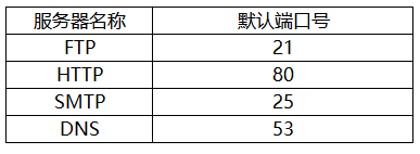 【记忆点】互联网标准协议所规定的默认端口号如下表所示: