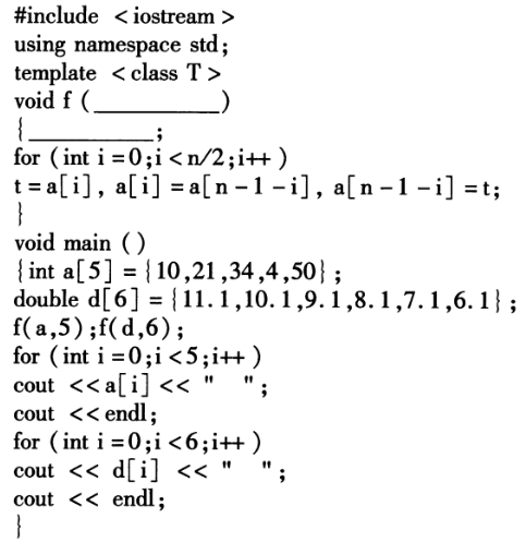 第1空:T A[ ],INT N