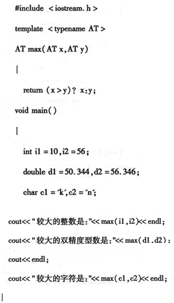 模板参数表:由用逗号分隔的模板参数构成,形式是“类型 参数名,类型 参数名,……”。如果是一个类型,则需要使用typename或class关键字来表示参数的类型,一般选用T作为标识符来标识类型参数。