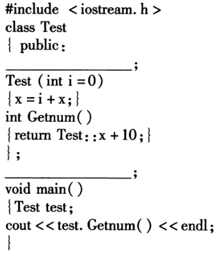 在类体内定义类的成员时,在前面添加static关键字后,该成员即成为静态成员。由题可知:x为静态成员,所以,第1空填static int x;
