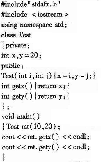 INT X,Y=20;错误,因为在类内部不能对数据成员直接赋值。