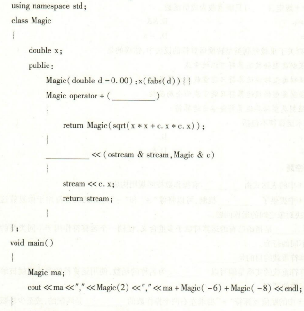 以下程序的输出“0,2,10”,请将程序补充完整。 作者:高老师 时间:2024-07-27 浏览 1 以下程序的输出“0,2,10”,请将程序补充完整。【正确答案】:Magic &cfriend ostream &operator 📱 扫码体验刷题小程序 扫一扫使用我们的微信小程序