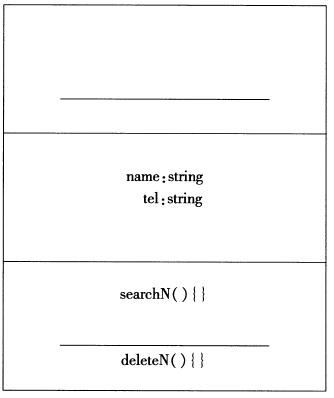 一个通讯录contacts有姓名name和电话tel两个属性,有三个成员函数searchN、insertN和deleteN分别完成查找、插入和删除功能,请完成contacts的类图。