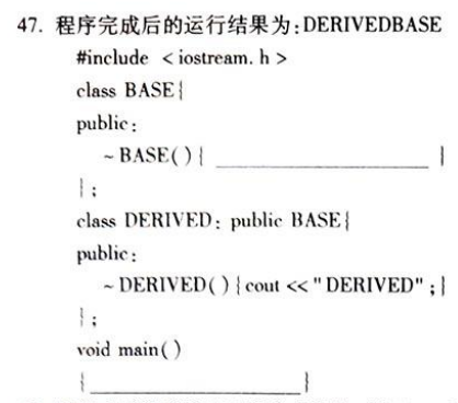 【正确答案】:cout<<"BASE"; DERIVED x;